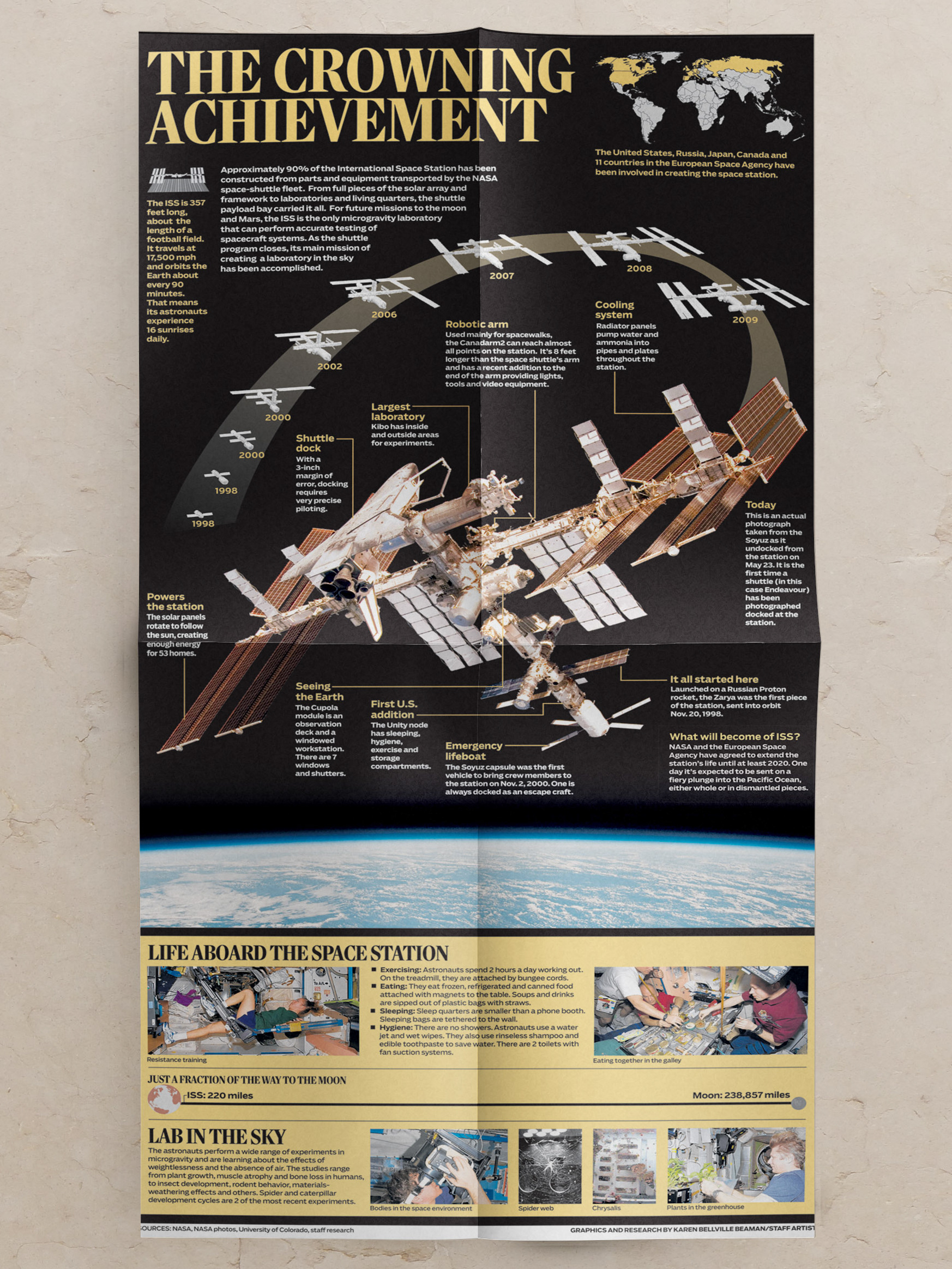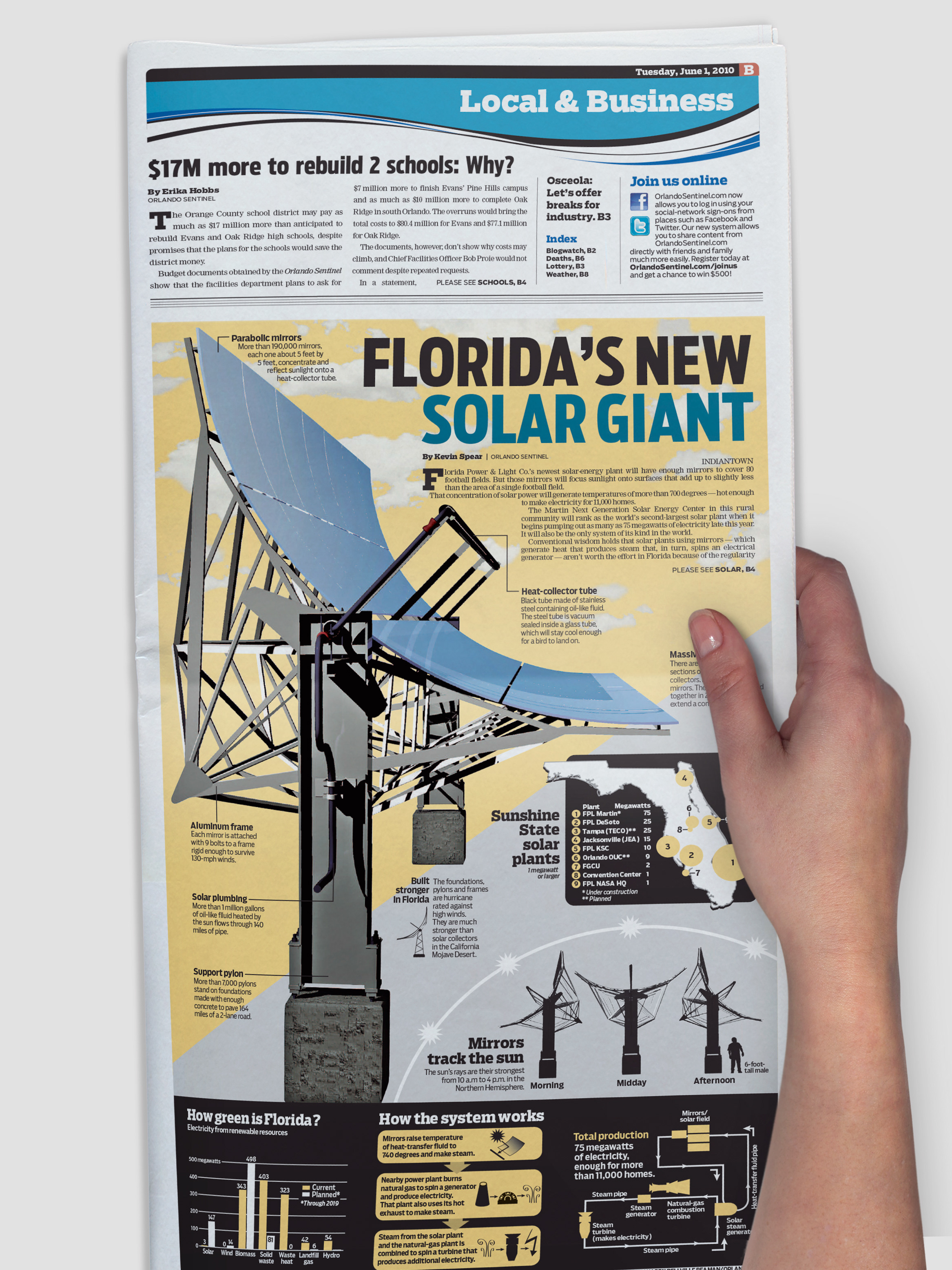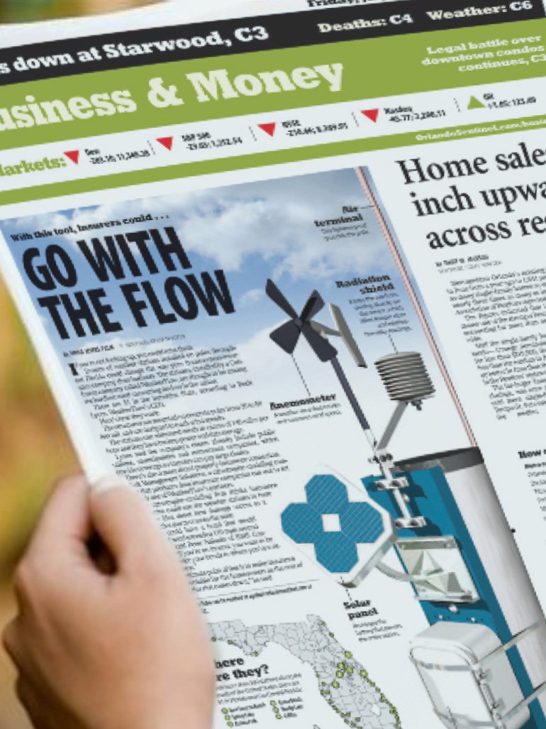 Covering the science behind hurricanes gives 'sort of' a school lesson to readers. Although a separate Hurricane Guide was provided, this front page infographic touches on more technical parts of the storm season. This infographic received an Award of Excellence from SND.