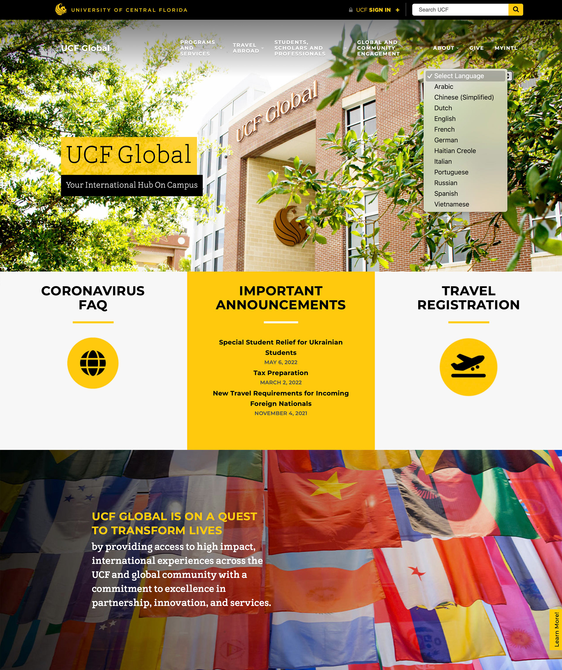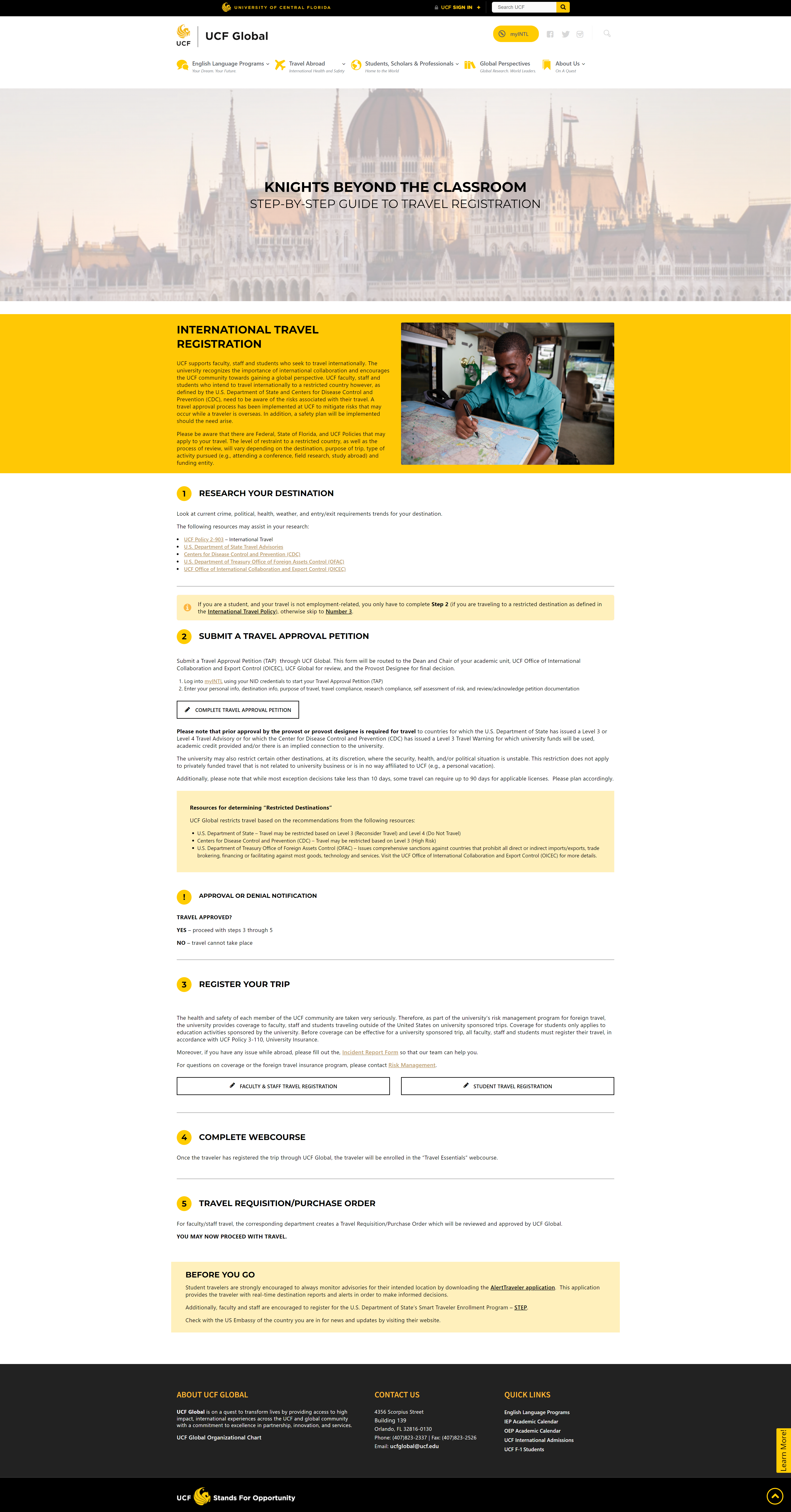 Browse the website and look at the pages for Current Students, Prospective and New Students, Travel Registration, Programs, and much more!